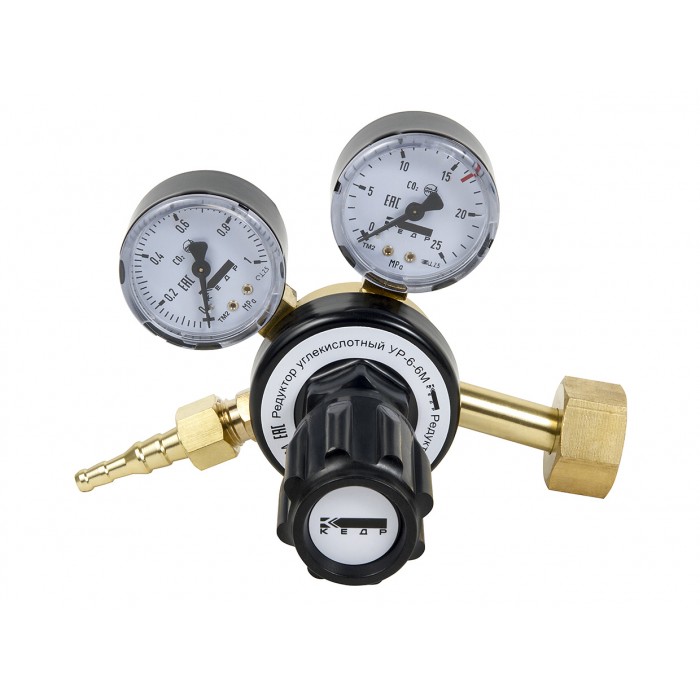 Редуктор углекислотный КЕДР УР-6-6М предназначен для понижения давления газа, поступающего из баллона, и автоматического поддержания заданного рабочего давления постоянным при газопламенной обработке.