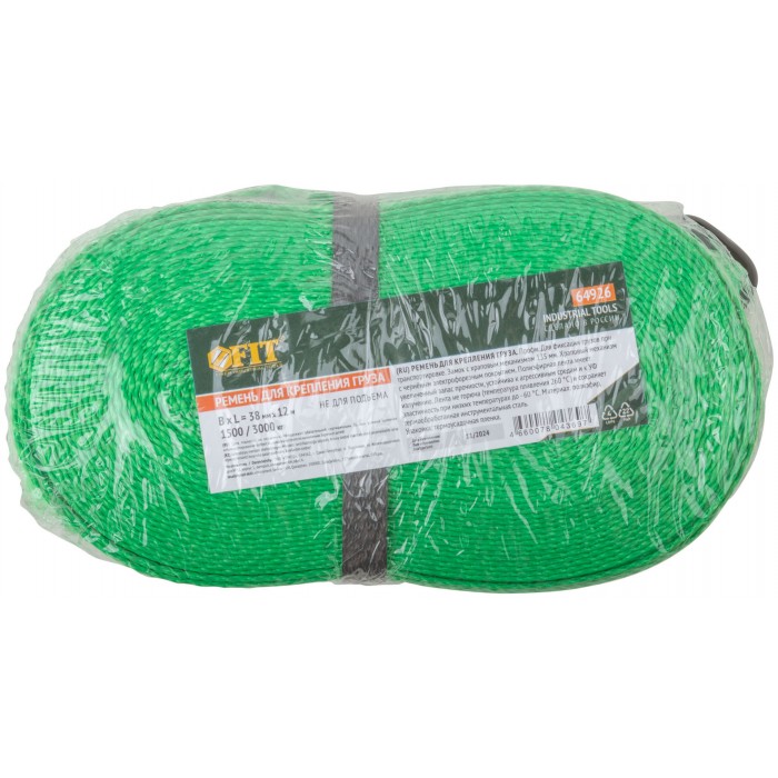 Ремень для крепления груза, храповый механизм 135 мм, полиэфирная лента 38 мм x 12 м, 1500 / 3000 кг (64926)
