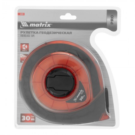 Рулетка геодезическая 30 м х 15 мм, закрытый корпус, фибергласовая лента, двусторонняя шкала, Pro Matrix