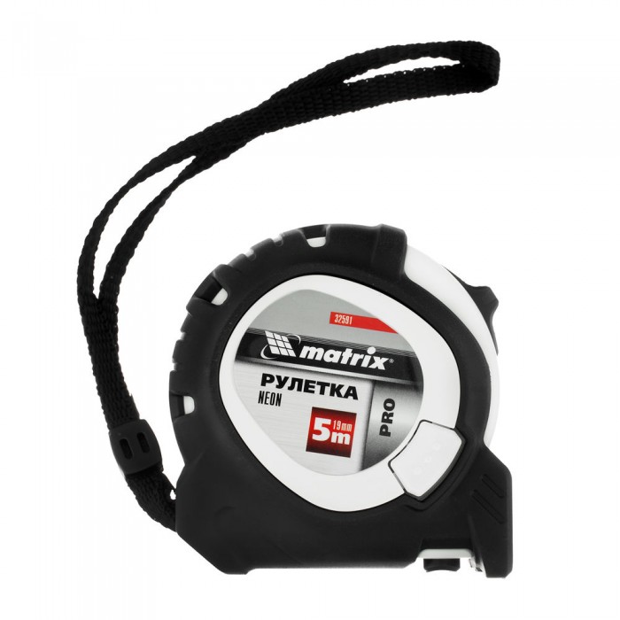 Рулетка Neon,5 м x 19 мм,обрезиненный корпус,3 фиксации,Pro Matrix