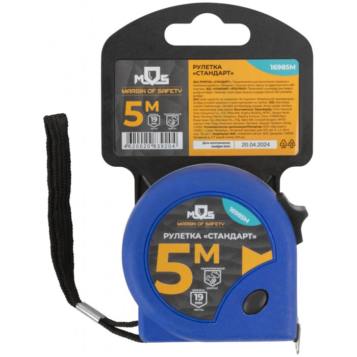 «Стандарт». Предназначена для выполнения замеров и нанесения разметки. Двойной стопор. Материал: стальная лента, корпус из ударопрочного ABS пластика. Упаковка: пластиковый подвес.