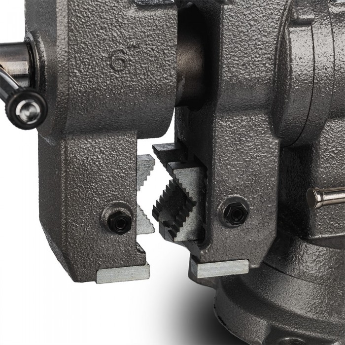 При производстве тисков RUNTEC используется только современное оборудование и высококачественные материалы. Строгое соответствие нормам безопасности и стандартам качества гарантирует длительный период эксплуатации и безопасную работу при соблюдении рекомендаций к использованию. Долгий срок службы Тиски изготовлены из качественной инструментальной стали. Массивная конструкция позволяет избегать деформации инструмента. Стандартные съемные рифленые губки выполнены из закаленной стали. Широкий функционал Поворотный механизм позволяет разворачивать тиски на 360°. С помощью площадки-наковальни можно быстро отрихтовать нужную деталь. Дополнительные губки дают возможность зажимать цилиндрические детали (трубы или прутки). И прямые губки, и губки для труб сменные.