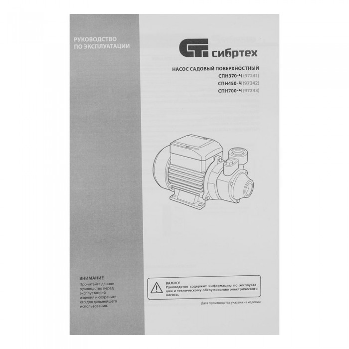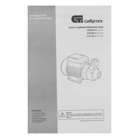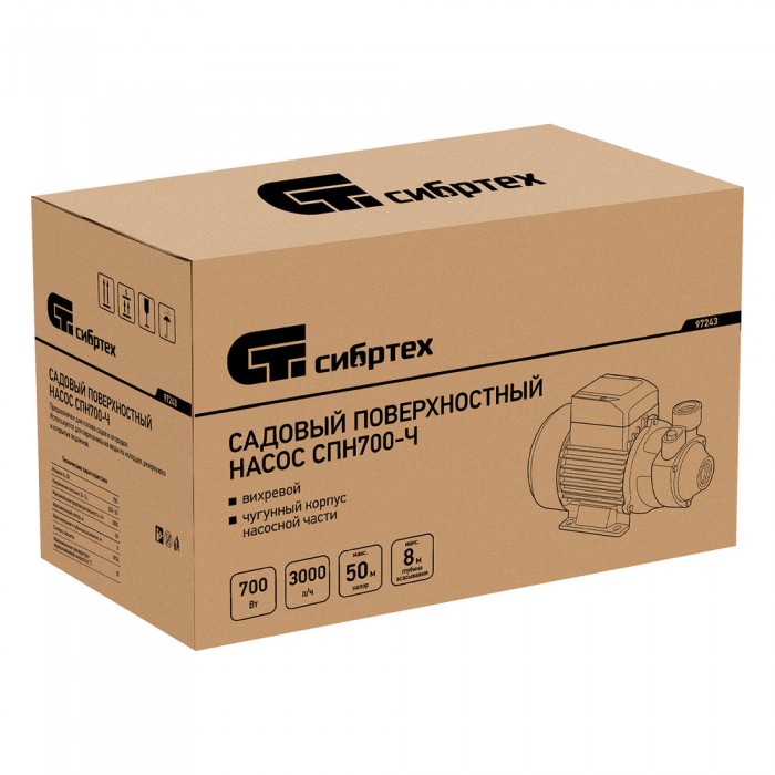 Садовый поверхностный насос СПН700-Ч, 700 Вт, напор 50 м, 3000 л/ч, чугун Сибртех (97243)