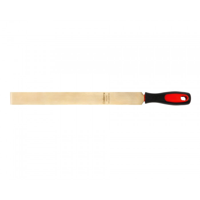 Искробезопасный шабер с пластиковой рукояткой HORTZ, предназначен для обработки поверхностей различных изделий, очистки от грязи, ржавчины, старых прокладок или герметика. Такой инструмент используют, в частности, во взрыво- и пожароопасных средах, где обычные шаберы запрещены для проведения работ. Изготавливается в двух вариантах сплавов: алюминиевая бронза и бериллиевая бронза (AL-Cu & Be-Cu). Высокая прочность, высокое качество. Сертифицирован в соответствии со стандартами взрывобезопасности ТР ТС 012/2011.