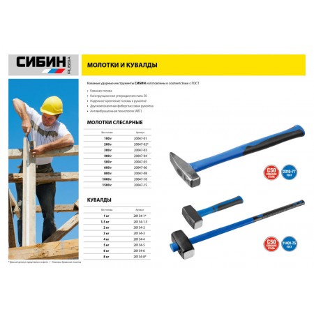 Молоток СИБИН - надежный инструмент для слесарных работ.