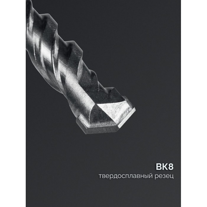 - Классическая двухрезцовая форма наконечника бура обеспечивает быстрое вхождение в материал и быстро отводит шлам в спираль.