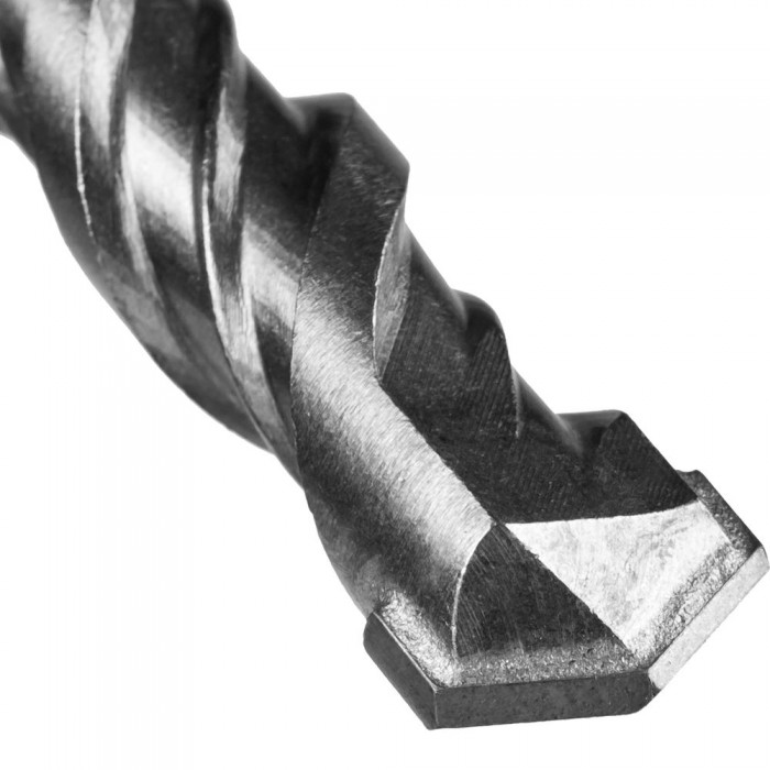 - Классическая двухрезцовая форма наконечника бура обеспечивает быстрое вхождение в материал и быстро отводит шлам в спираль.
