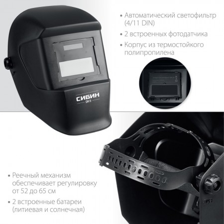 Сварочный щиток СИБИН для индивидуальной защиты лица и глаз сварщика от яркого светового, ультрафиолетового и инфракрасного излучения, брызг расплавленного металла и искр при выполнении сварочных работ, резки и пайки металла.
