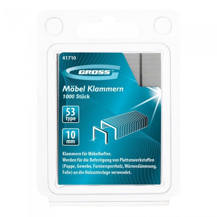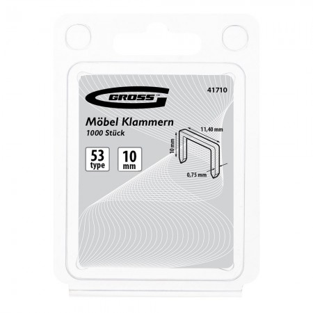 Скобы, 10 мм, для мебельного степлера, усиленные, тип 53, 1000 шт Gross (41710)