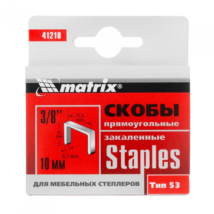 Скобы, 10 мм, для мебельного степлера, закаленные, тип 53, 1000 шт Matrix (41210)