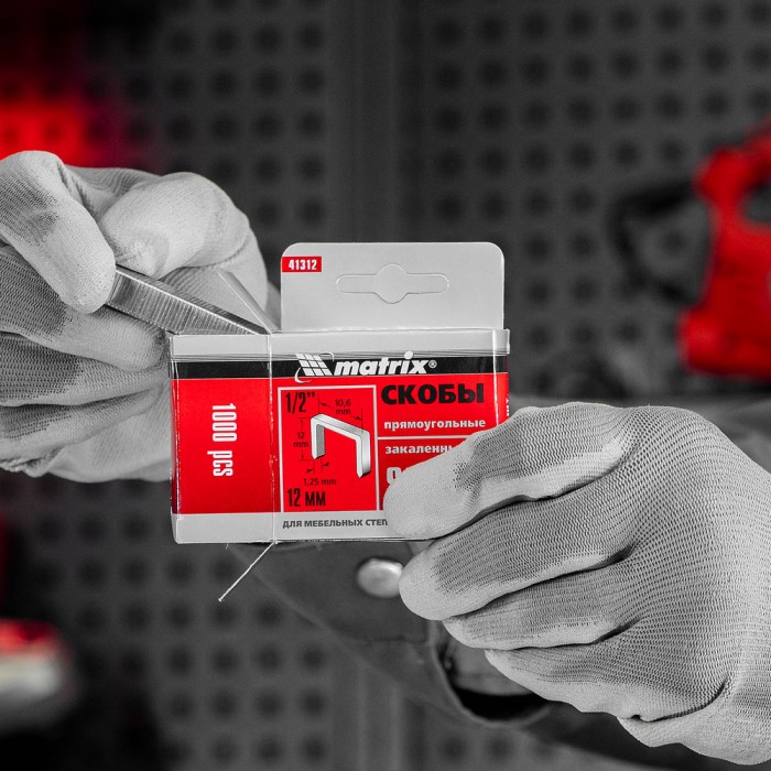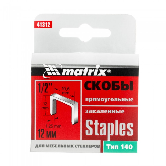 Скобы, 12 мм, для мебельного степлера, закаленные, тип 140, 1000 шт Matrix (41312)