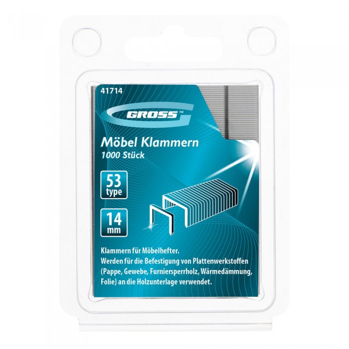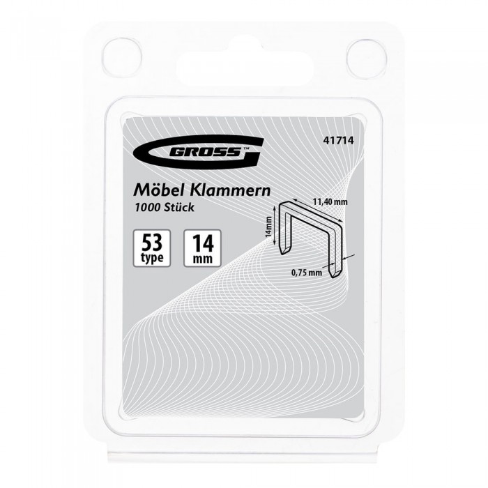 Скобы, 14 мм, для мебельного степлера, усиленные, тип 53, 1000 шт Gross (41714)