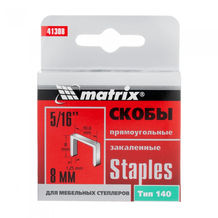 Скобы, 8 мм, для мебельного степлера, закаленные, тип 140, 1000 шт Matrix (41308)