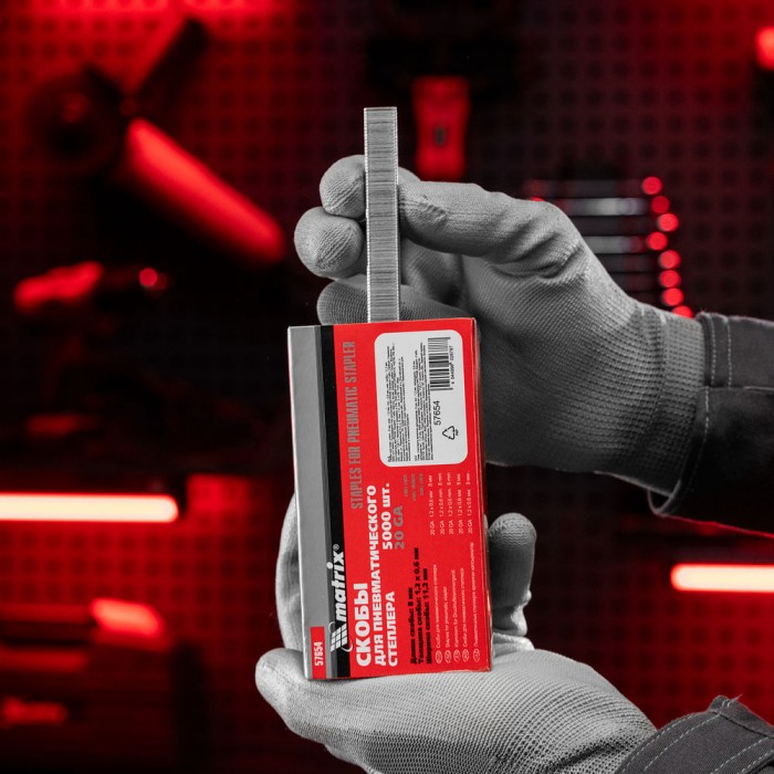 Скобы для пневматического степлера, 8 мм, ширина 1.2 мм, толщина 0.6 мм, ширина скобы 11.2 мм, 5000 шт Matrix (57654)