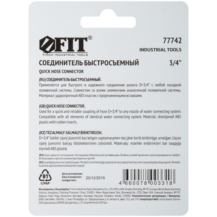 Применяется для быстрого и надежного соединения поливочных шлангов с любой насадкой поливочной системы. Совместим со всеми элементами аналогичной поливочной системы. Материал: ABS пластик с прорезиненными вставками. Упаковка: блистер.