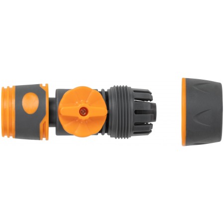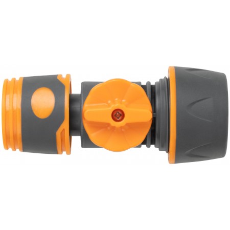 Применяется для быстрого и надежного соединения поливочного шланга 3/4'' с любой насадкой, имеющей универсальный соеденитель. Запорный клапан для регулировки подачи воды. Совместим со всеми элементами аналогичной поливочной системы. Материал: ABS пластик с прорезиненными вставками. Упаковка: блистер.
