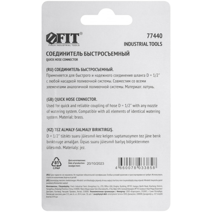 Применяется для быстрого и надёжного соединения гибкого шланга с любой насадкой поливочной системы. Материал: латунь. Упаковка: блистер.