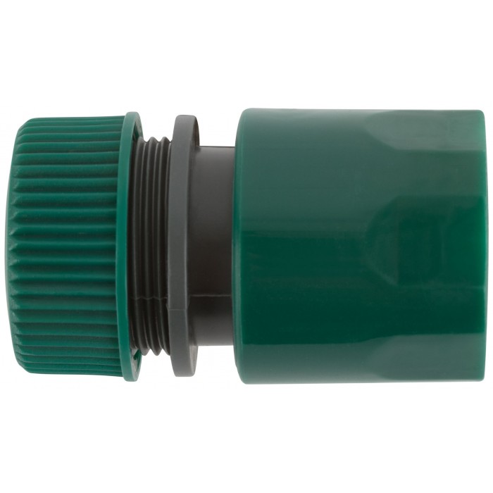 Применяется для быстрого и надежного соединения шланга с любой насадкой поливочной системы. Встроенный клапан автостопа перекрывает поток воды при снятии насадки. Материал: ABS пластик. Упаковка: блистер.