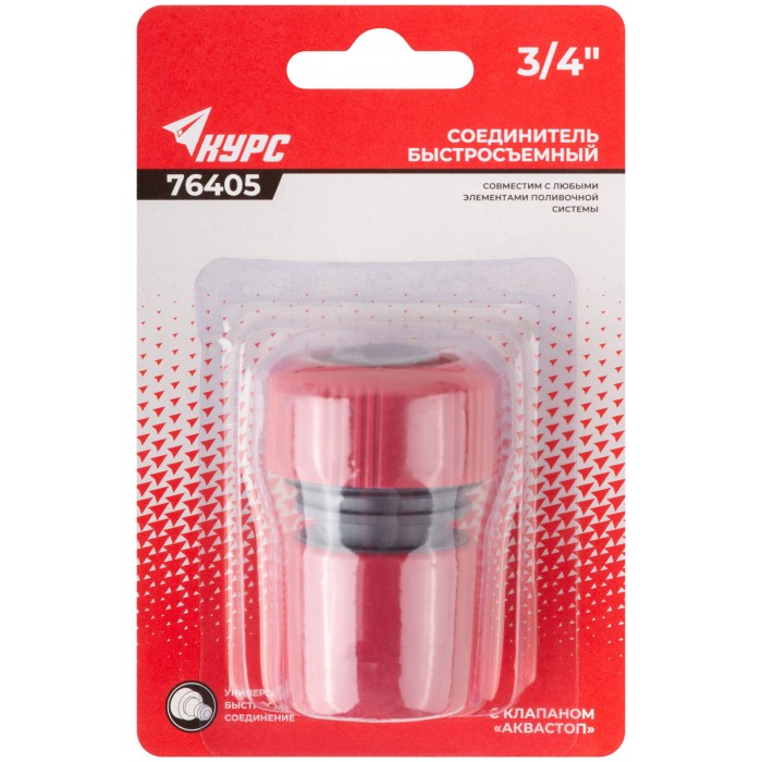 Универсальный быстросъемный. С клапаном ''аква стоп'' Для быстрого и надежного соединения шланга с любыми элементами и насадками поливочной системы. Клапан ''аквастоп'' автоматически прекращает подачу воды, при отсоединении насадки. Материал: ABS пластик. Упаковка: блистер.