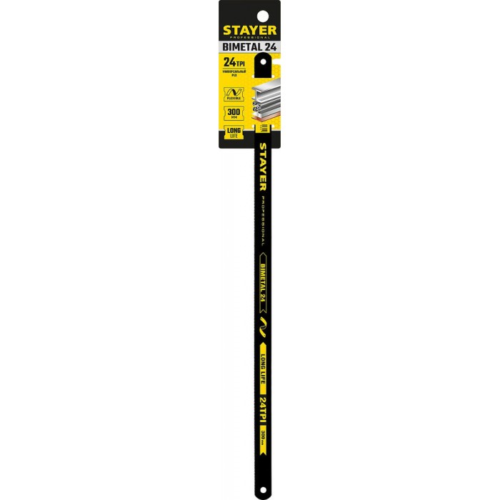 Биметаллическое полотно STAYER Bimetal-24 серии Professional - это высоколегированная быстрорежущая сталь HSS на прочной и гибкой основе из рессорно-пружинной стали