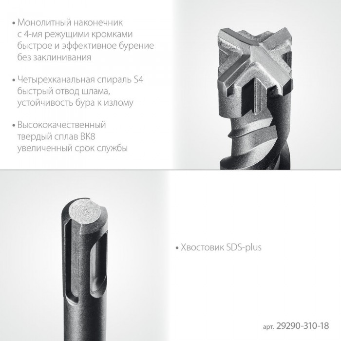 Бур SDS-plus HERCULES-4Х 18x310 мм STAYER 29290-310-18