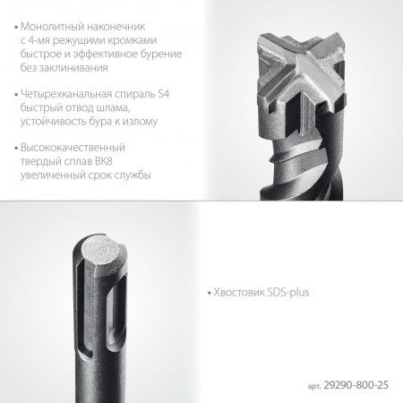 Бур SDS-plus HERCULES-4Х STAYER 25x800 мм 29290-800-25