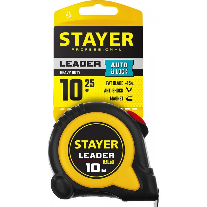 Рулетка с автостопом 10 м х 25 мм Leader Professional STAYER 3402-10-25