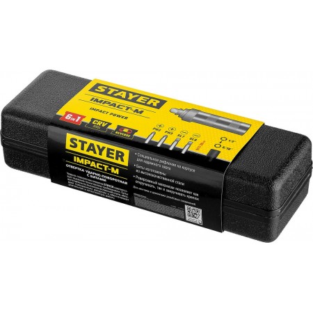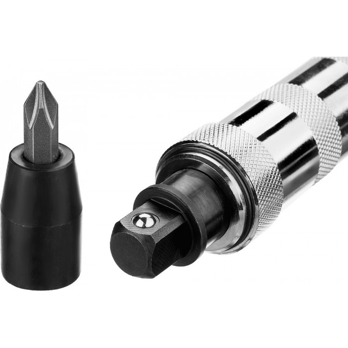 Работа как с ударными битами с хвостовиком 5/16”, так и с ударными головками с присоединительным квадратом 1/2”