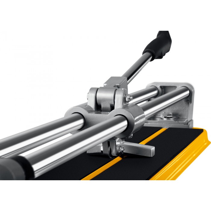 - Усиленная платформа и опоры позволяют проводить работы с керамической плиткой повышенной толщины и увеличивают срок службы плиткореза. Оснащенный подшипниками режущий механизм значительно облегчает работу плтикорезом. Благодаря равномерному надрезу обеспечивается разлом кафельной плитки без трещин и сколов.