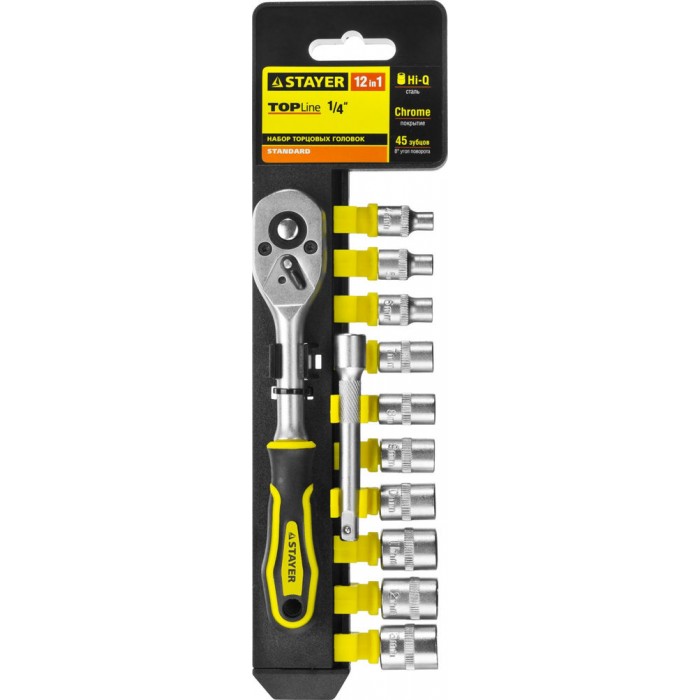 Набор торцовых головок и бит-головок 12 предм., (1/4") RSS 12S STAYER 27754-H12