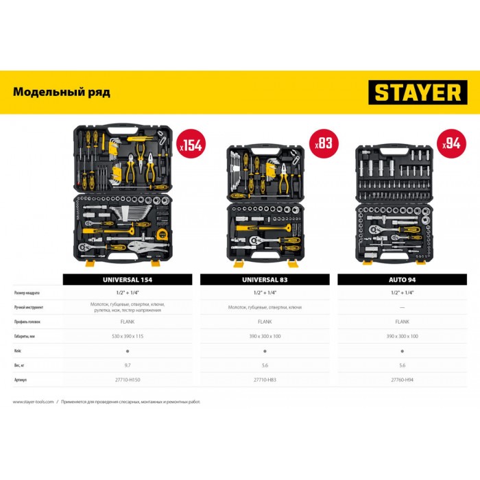 Набор инструмента универсальный 83 предм., (1/2"+ 1/4") UNIVERSAL 83 Professional STAYER 27710-H83