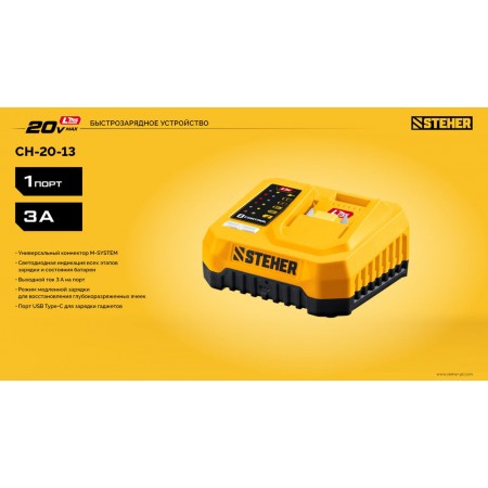 Зарядное устройство для LMS АКБ 20 В, 1 порт, 1 х 3 А STEHER CH-20-13