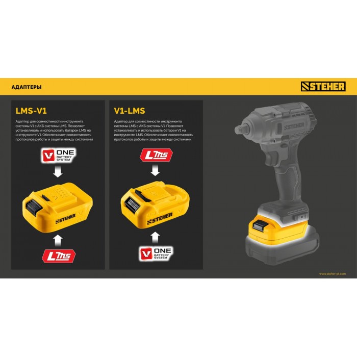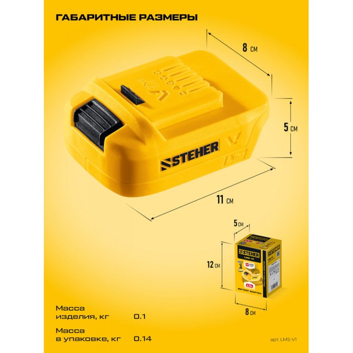 Адаптер для АКБ LMS под инструмент V1 STEHER 20 В LMS-V1
