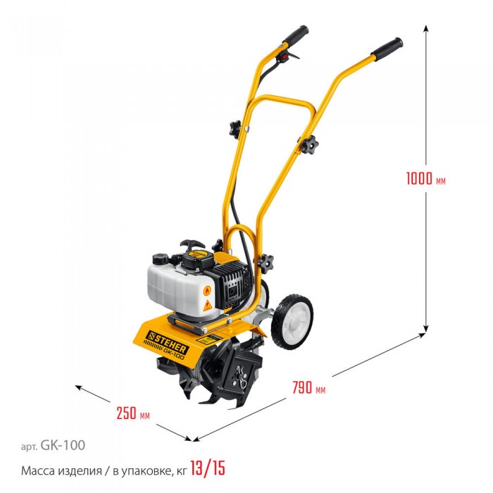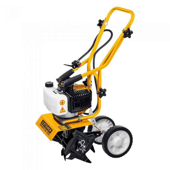 Лёгкий и манёвренный культиватор с двухтактным двигателем для рыхления и культивации почвы на приусадебном участке. Сошник позволяет контролировать величину заглубления. Складная рукоятка и транспортные колеса облегчают эксплуатацию, транспортировку и хранение.