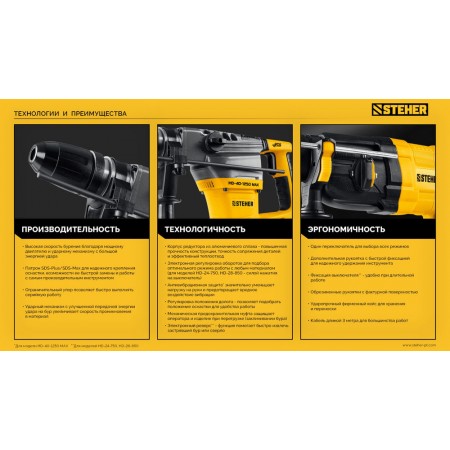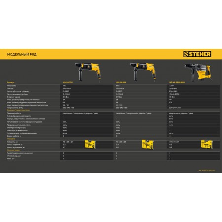 - Патрон SDS-Plus для быстрой замены расходного инструмента
