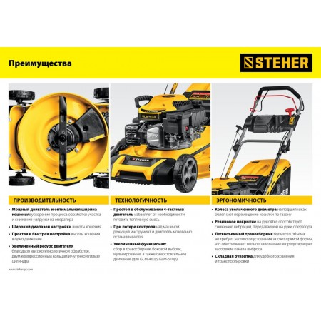 Газонокосилка бензиновая 410 мм, 3.5 л.с. STEHER GLM-410