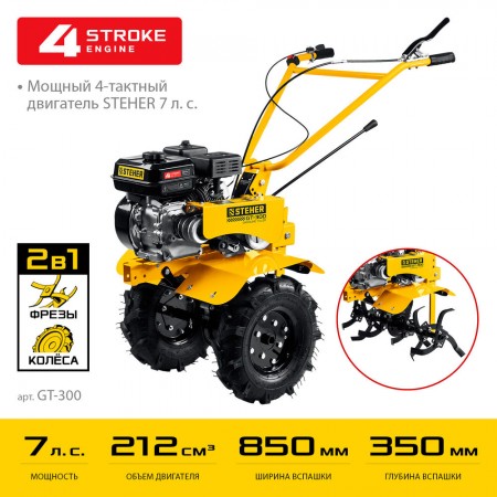 2 скорости вперед (основная и повышающая) и 1 назад позволяют комфортно работать на любых типах почвы