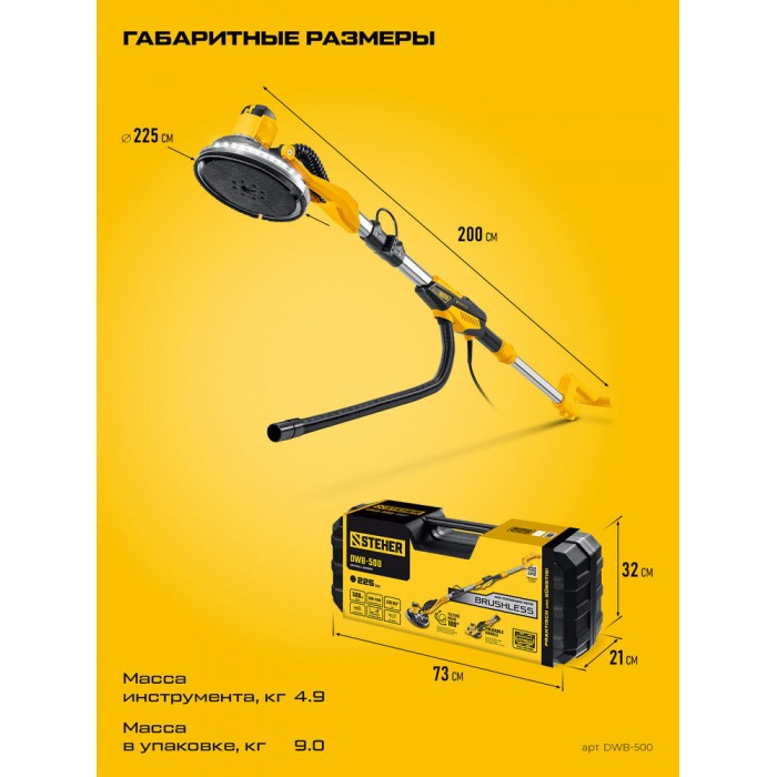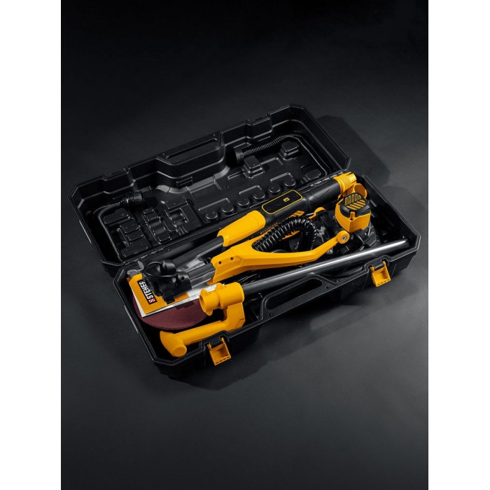 Машина шлифовальная для стен (жираф) с бесщеточным BRUSHLESS двигателем - незаменимый инструмент для обработки как горизонтальных, так и вертикальных поверхностей при подготовке к окраске или поклейке обоев. Облегченная конструкция и высокая надежность благодаря малогабаритному и высокотехнологичному двигателю, не требующему обслуживания