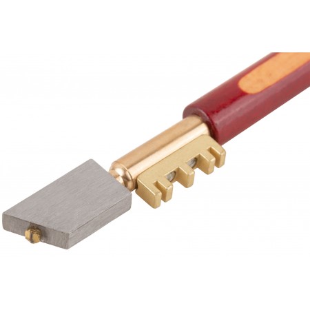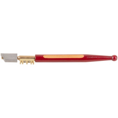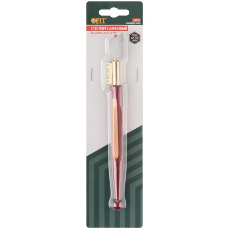 Для резки стекол толщиной до 5 мм. Ресурс до 4500 м. Материал: инструментальная сталь, алмазный резак, деревянная ручка. Упаковка: блистер.