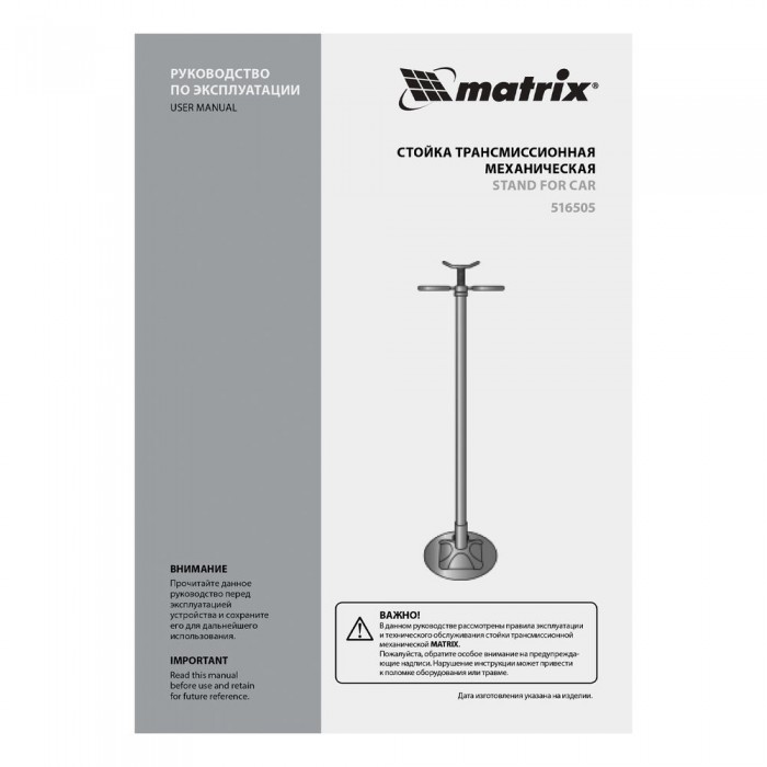 Стойка трансмиссионная механическая, 0.6 т, H подъема 1360-2030 мм, HigH Position Matrix (516505)