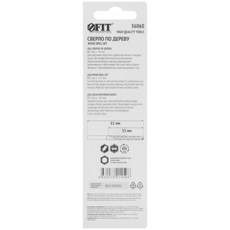 Сверло по дереву, CrV Профи 3 мм (36060)