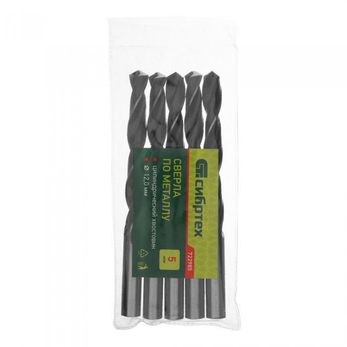 Сверло по металлу, 12 мм, быстрорежущая сталь, 5 шт, цилиндрический хвостовик Сибртех