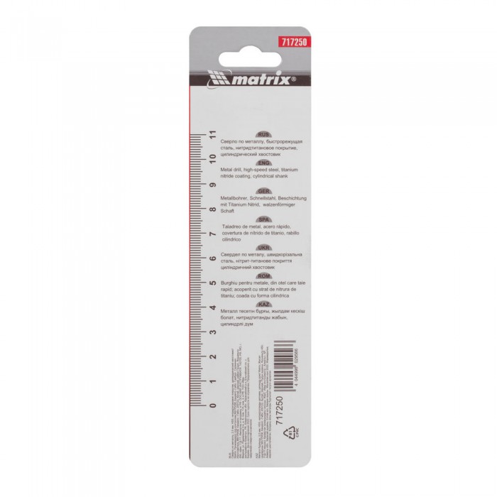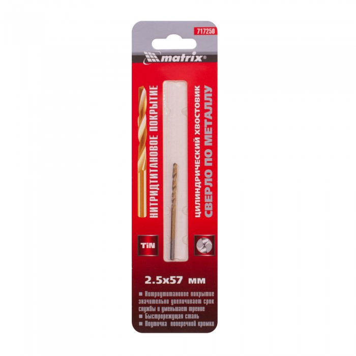 Сверло по металлу, 2.5 мм, HSS, нитридтитановое покрытие, цилиндрический хвостовик Matrix