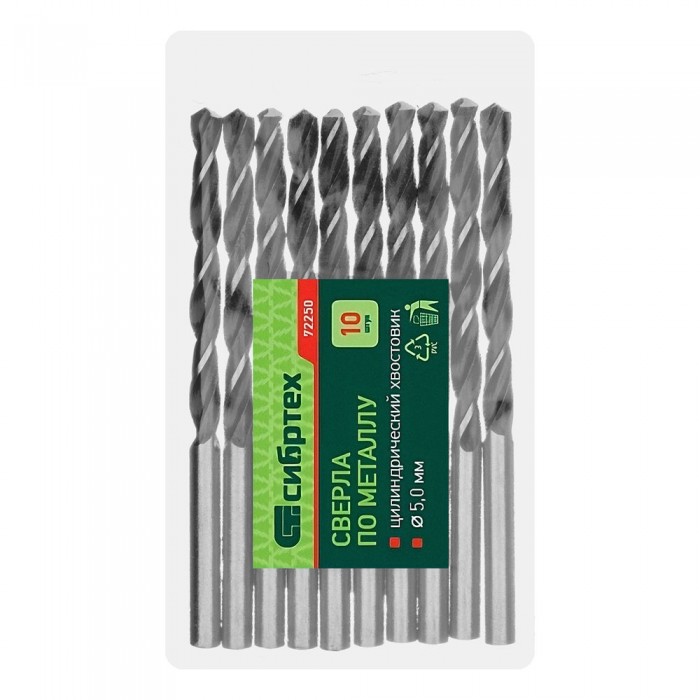 Сверло по металлу, 5 мм, быстрорежущая сталь, 10 шт, цилиндрический хвостовик Сибртех