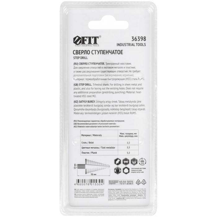 Для сверления больших отверстий в тонких материалах (листовая сталь, цветные металлы, пластмасса), а также для рассверливания существующих отверстий. Лазерная заточка. Материал: полированная HSS сталь. Упаковка: блистер.
