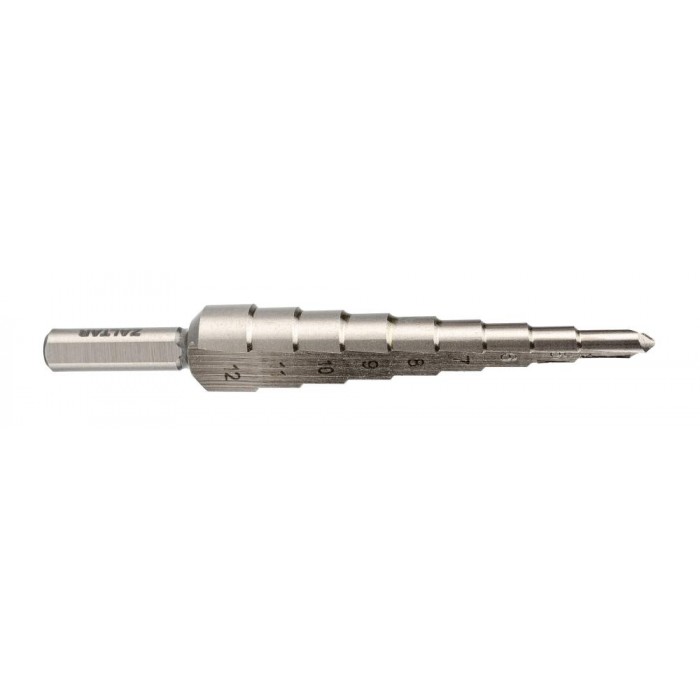 Сверло ступенчатое, HSS, Gr.1, O4-12 мм, прямая канавка, трёхплоскостной хвостовик (ZA-05321)