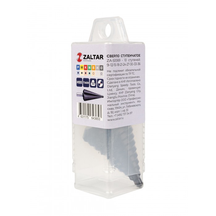 Сверло ступенчатое, HSS TiAlN, O9-36 мм, прямая канавка, трёхплоскостной хвостовик (ZA-50069)