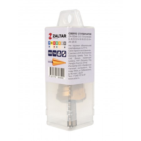 Сверло ступенчатое, HSS TiN, Gr.3, O6-30 мм, прямая канавка, трёхплоскостной хвостовик (ZA-05348)