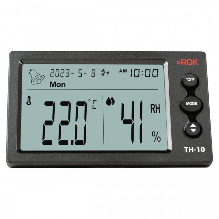 Отображение времени и даты упрощает занесение данных в журнал и другую документацию. Встроенный в цифровой термогигрометр RGK TH-10 будильник можно использовать как звуковое напоминание о необходимости проверки климатических параметров; для этого хорошо подходит специальный режим, при котором сигнал подается каждый час.