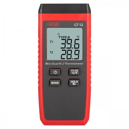 Контактный термометр RGK CT-12 - это надежный и точный прибор для измерения температуры в диапазоне от - 40 °С до + 260 °С с комплектной термопарой. Погрешность при этот составляет не более ± 1,5 °C. Главное преимущество этой модели - 2 гнезда для подключения выносных датчиков с функцией определения разности между каналами.
